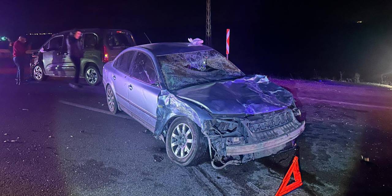 Çorum’un Alaca meydane gelen feci kazada iki otomobil büyükbaş bir hayvana çaptı.