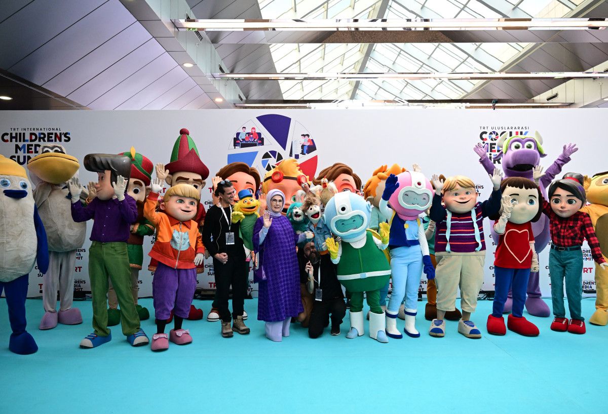 Emine Erdoğan, Haliç Kongre Merkezi’nde “Dijital Çağda Çocuk Medyası: Aileyi Güçlendirmek, Değerler İnşa Etmek” başlığıyla düzenlenen TRT Uluslararası Çocuk Medyası Zirvesi’ne katıldı.