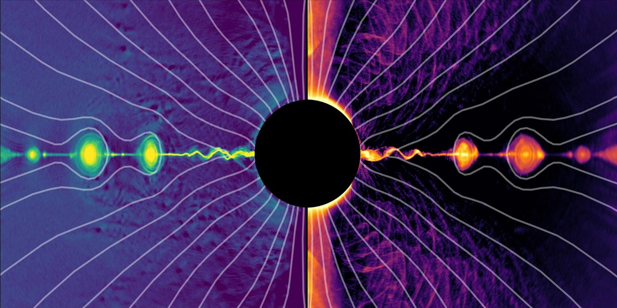 Yeni simülasyonlara göre, bu dev kozmik motorlar enerjilerini yalnızca manyetik alanlardan değil, manyetik yeniden bağlanma (magnetic reconnection) adı verilen bir süreç aracılığıyla da dışa aktarabiliyor. Bu süreç, kara deliğin dönüş enerjisinin manyetik alanlar aracılığıyla ışık hızına yakın hızlarda uzaya fırlatılan madde jetlerine aktarılmasını sağlıyor.