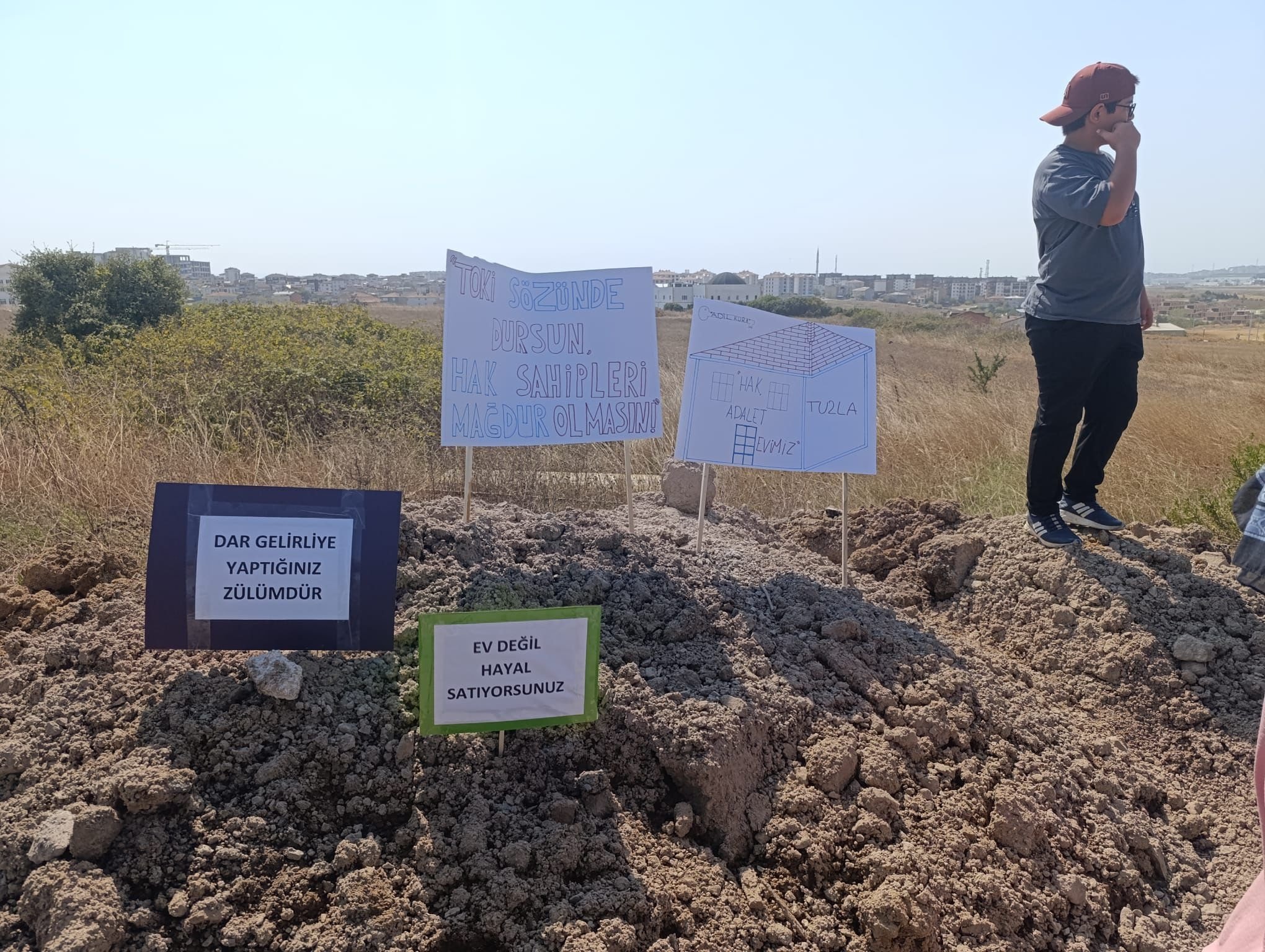 TOKİ mağduru Sabih Köten yaşadıklarını şöyle anlattı: “2 yıldır her hafta sonu kızımı inşaata götürüp ‘Bak buralarda oynayacaksın’ diyordum. Bir sabah uyandık tapumuz, kazanılmış hakkımız elimizden alınmış, bize haber bile verilmiyor. Canlı kura çekimini (daire belirleme için) izlerken bize Sazlıbosna’dan ev çıktığını öğrendik. Benim işime 100 kilometre uzak, nasıl gidebilirim oraya bana orada iş bulabilecekler mi?”